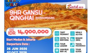 Berkumpul di Bandara, untuk mulai perjalanan menuju Dunhuang. Dunhuang adalah sebuah kota kecil di Provinsi Gansu, China. Kota Dunhuang terkenalsebagaisalah satu titik penting di jalursutra pada zaman kuno. Dunhuang memadukan pesona Sejarah, kekayaan budaya dan keindahan alam gurun, menjadikannya destinasi unik. Setibanya di Dunhuang, Anda akan dijemput dan langsung diantarkan ke hotel untuk beristirahat.